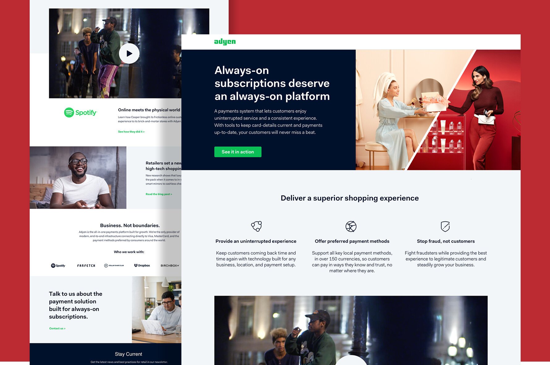 Adyen is a Dutch Fintech company that changed the payment industry by making it easy for companies to accept and manage payments online and at POS through a single platform. While widely recognized in Europe, Adyen was relatively unknown in the US unlike one of its competitors Stripe. Our goal was to grow awareness for Adyen and influence businesses globally in an effort to convert them into pipeline opportunities and support our trillion commercial goals.